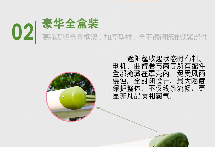 您当前的位置 :主页 > 产品中心 > 铝合金曲臂伸缩篷 > 半盒款伸缩篷